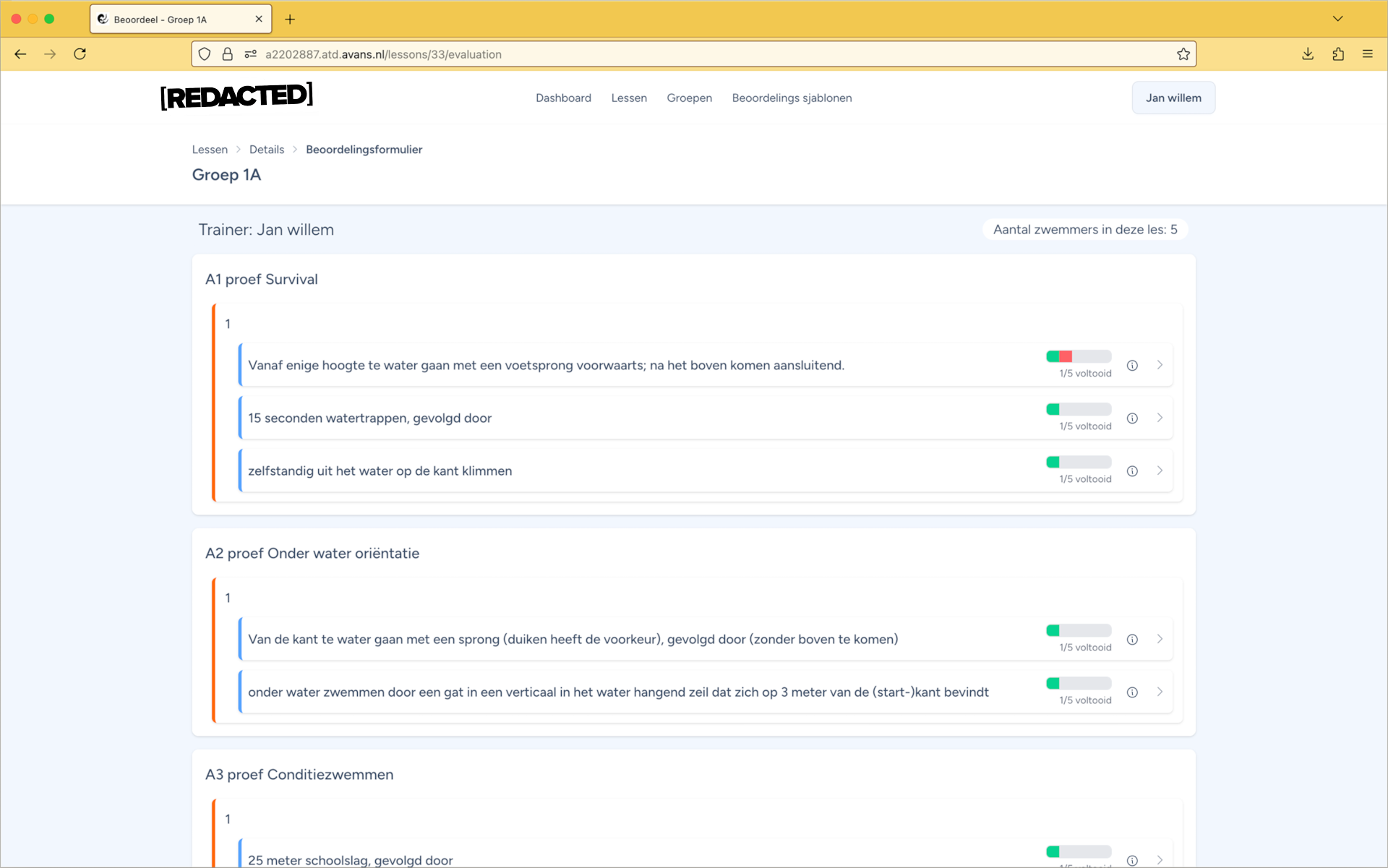 This was a group project for school that took place over the course of ~20 weeks, for which we had to create a solution that would fix several of their problems. The client was a swimming club that taught children to swim and get their swimming certificates. The instructors were using paper for keeping track of the swimmer’s progress, which proved to be a problem in an environment with a lot of water. Some of their other issues were that paper could get lost and it takes long to find the information they are looking for, parents/guardians had no way to see the progress of their kids and parents/guardians often didn’t speak Dutch, which made it hard to comminucate what the kids should work on.